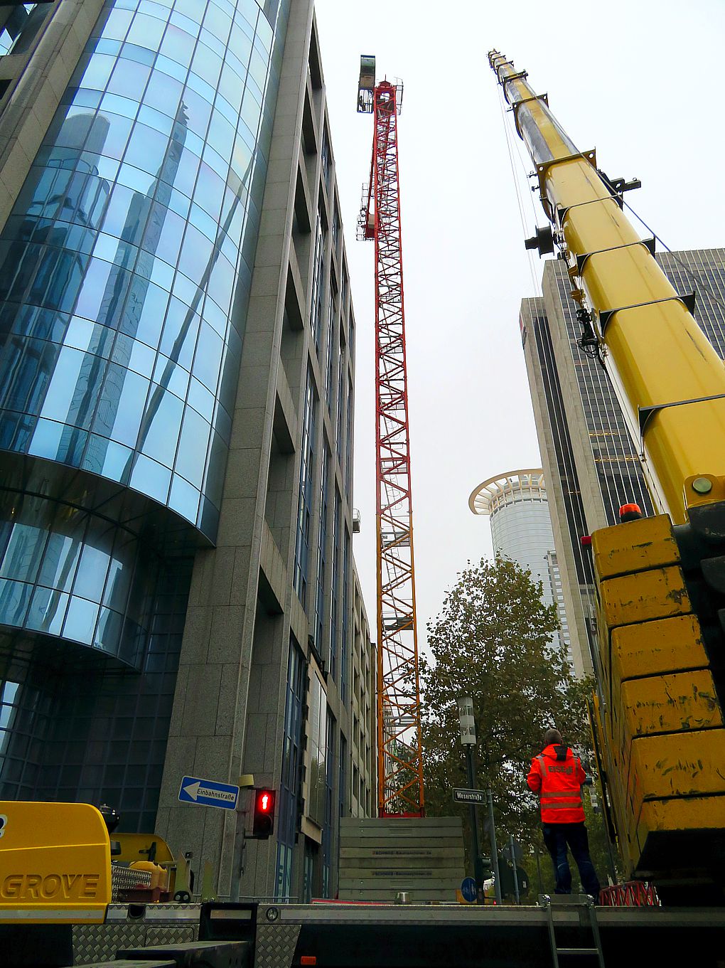 Heute wurde der erste Umbau-Kran aufgebaut: