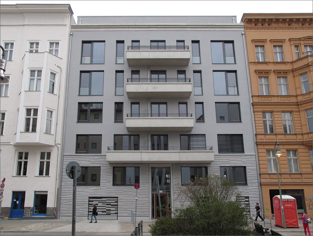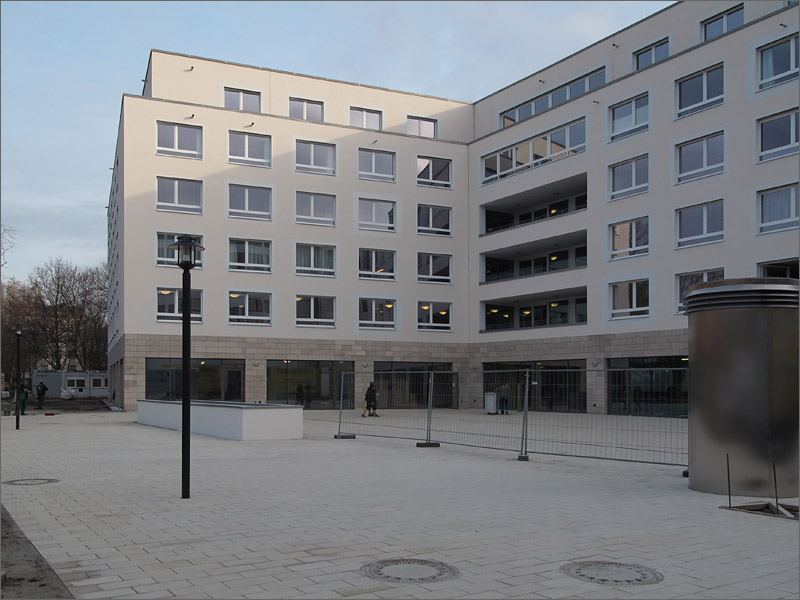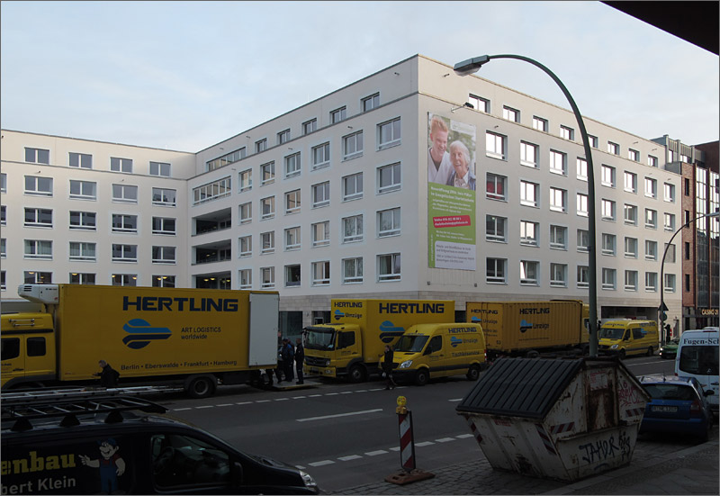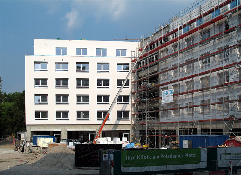 - der warme Ton (kommt im Rendering nicht rüber) der hochformatige Panelflächen soll mit den Scharounbauten am Kulturforum von gegenüber korrespondieren