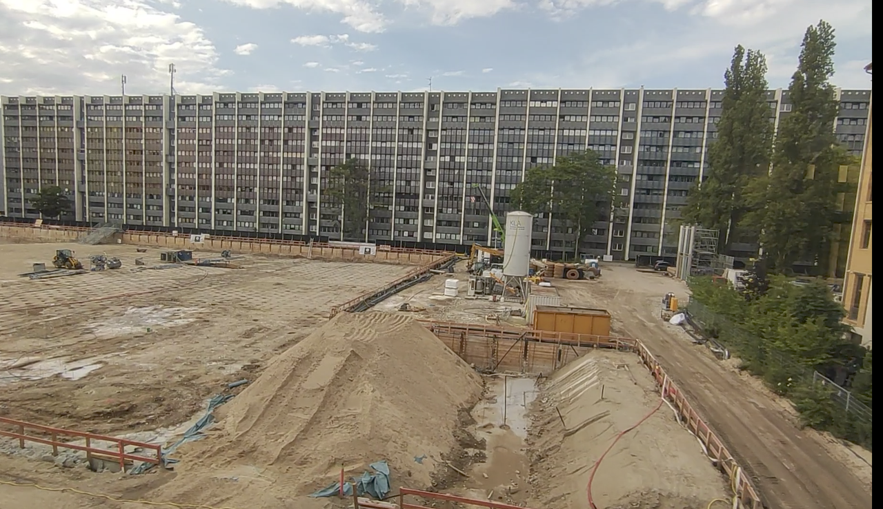 Kleines Update heute. Während man der Aushebung der Grube Ist, Ist man auf der östliche Seite ( von Bild aus gesehen) mit den Rohbau beschäftigt. Teil des UG wurde der Boden betoniert.
