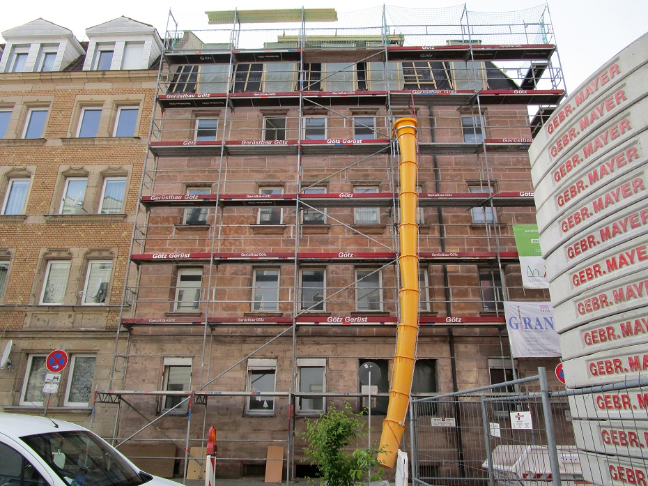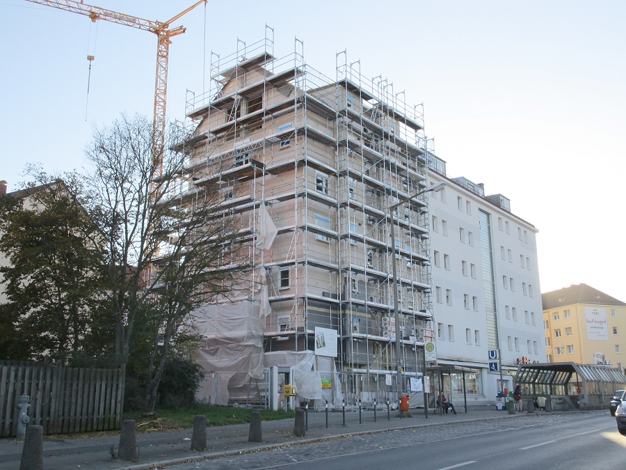 Das Bauvorhaben in der Turnheimer Straße hat Endhöhe erreicht, und erhält nun seine Dämmhülle sowie den Innenausbau: