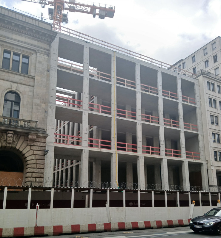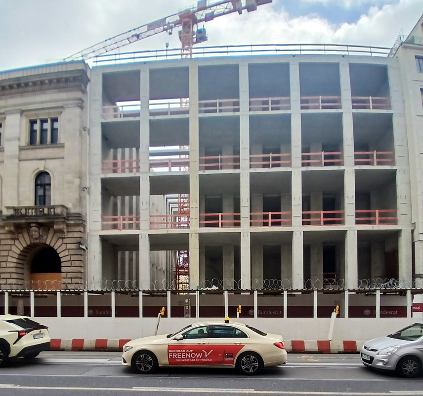 Was ist denn mit dem daneben liegenden Bundesrat passiert? Da sind so seltsame Metallspangen über die Fassade gespannt.
