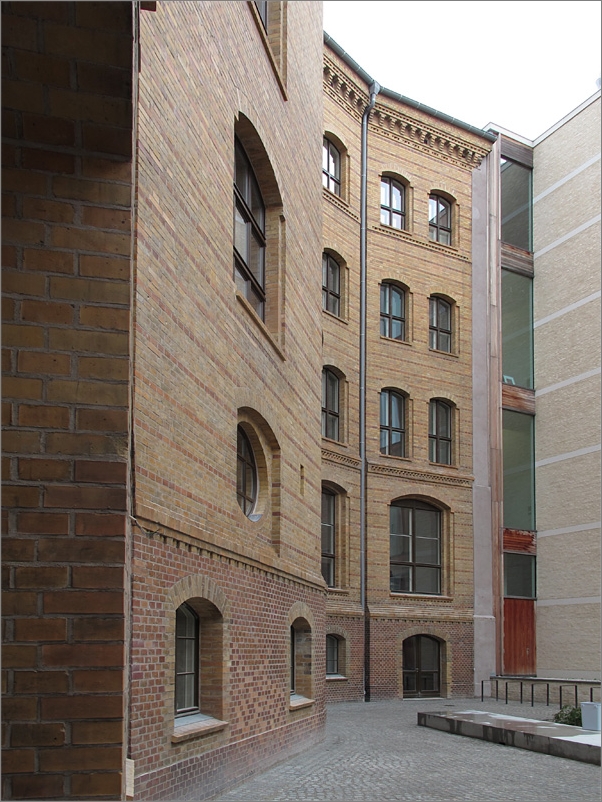 Ich muss mein positives Urteil oben leider etwas einschränken und zugeben, dass mir der Erhalt der Zeitspuren in der Fassade eindeutig zu weit geht, obwohl ich das nicht grundsätzlich schlecht finde (aber es sollte dann trotzdem noch schön aussehen). Was dem Gebäude als Ganzem sicher gelingt: