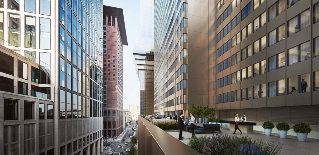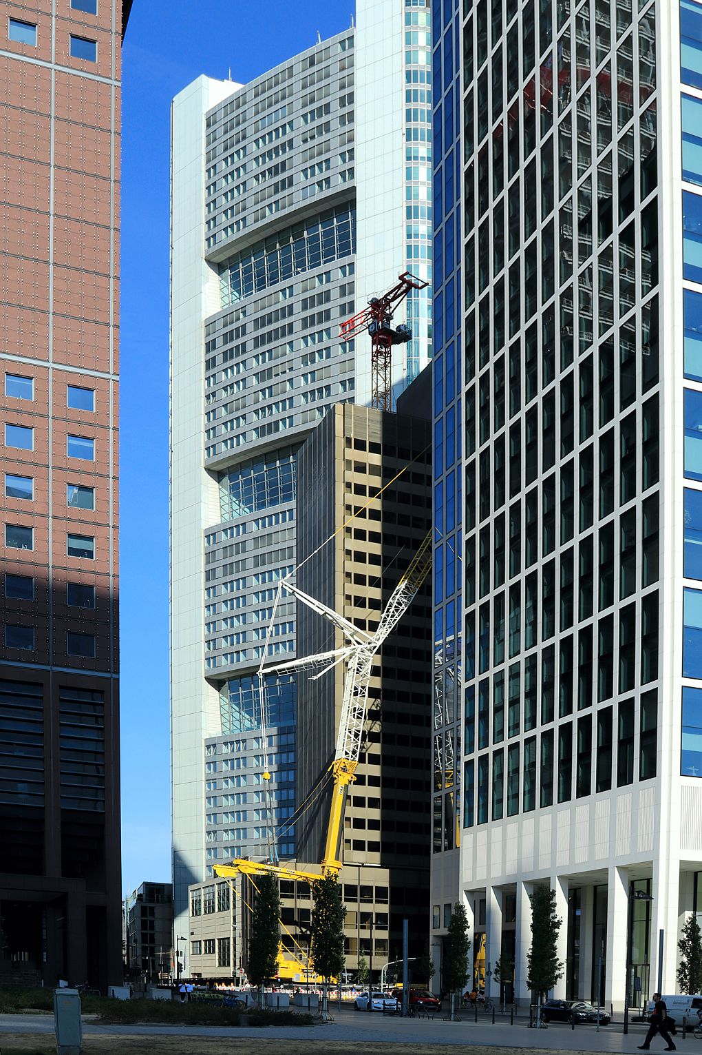Im vierten Obergeschoss gab es schon einmal eine Aussichtsterrasse. Diese war über die Cafeteria zugänglich. Damals befand sich die Cafeteria noch im vierten OG, bevor sie nach dem Bezug des neuen Hochhauses und anschließender Renovierung der Kantine/ Cafeteria des alten Hochhauses ins dritte OG verlegt wurde.
