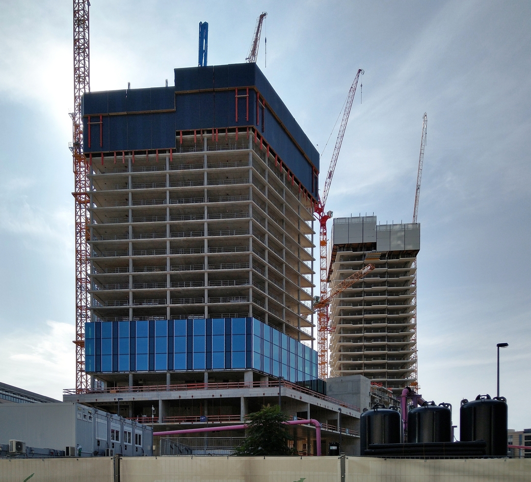 Zwei Hochhäuser in Bau, drei Perspektiven: