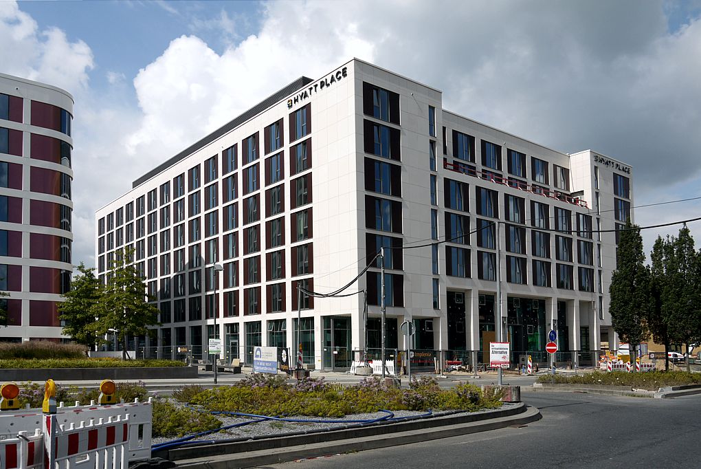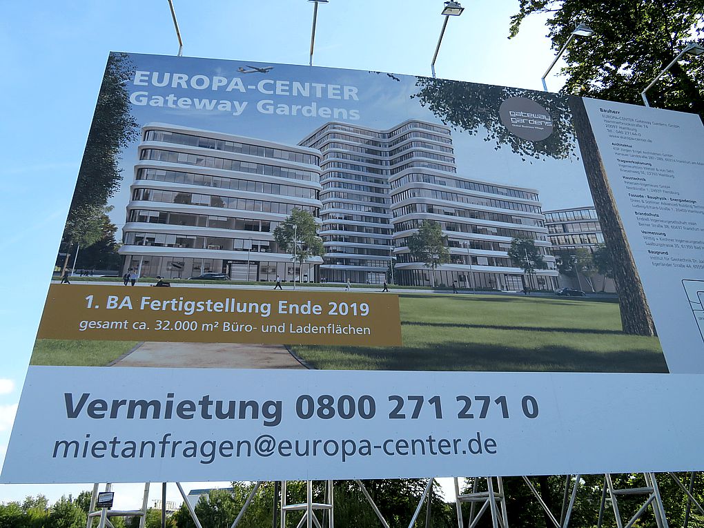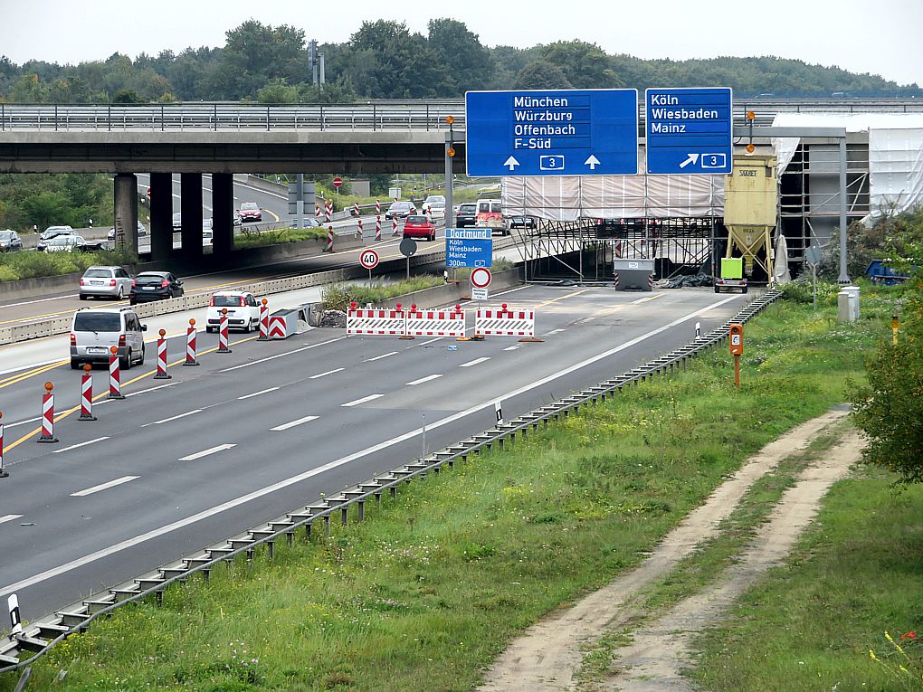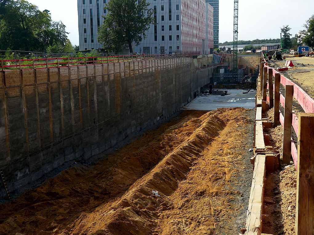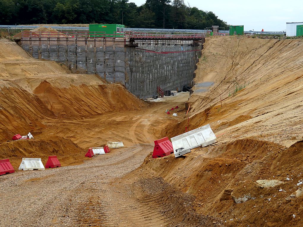 Der in offener Bauweise zu erstellende Abschnitt der neuen S-Bahn-Strecke auf Höhe des östliches Endes der LSG-Sky-Chefs-Halle, Blick in Richtung Frankfurter Kreuz: