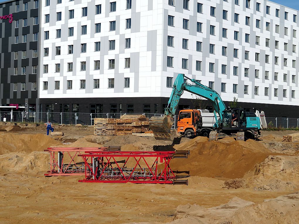 Gut einen halben Kilometer weiter westlich macht der Bau der S-Bahn-Station Fortschritte: