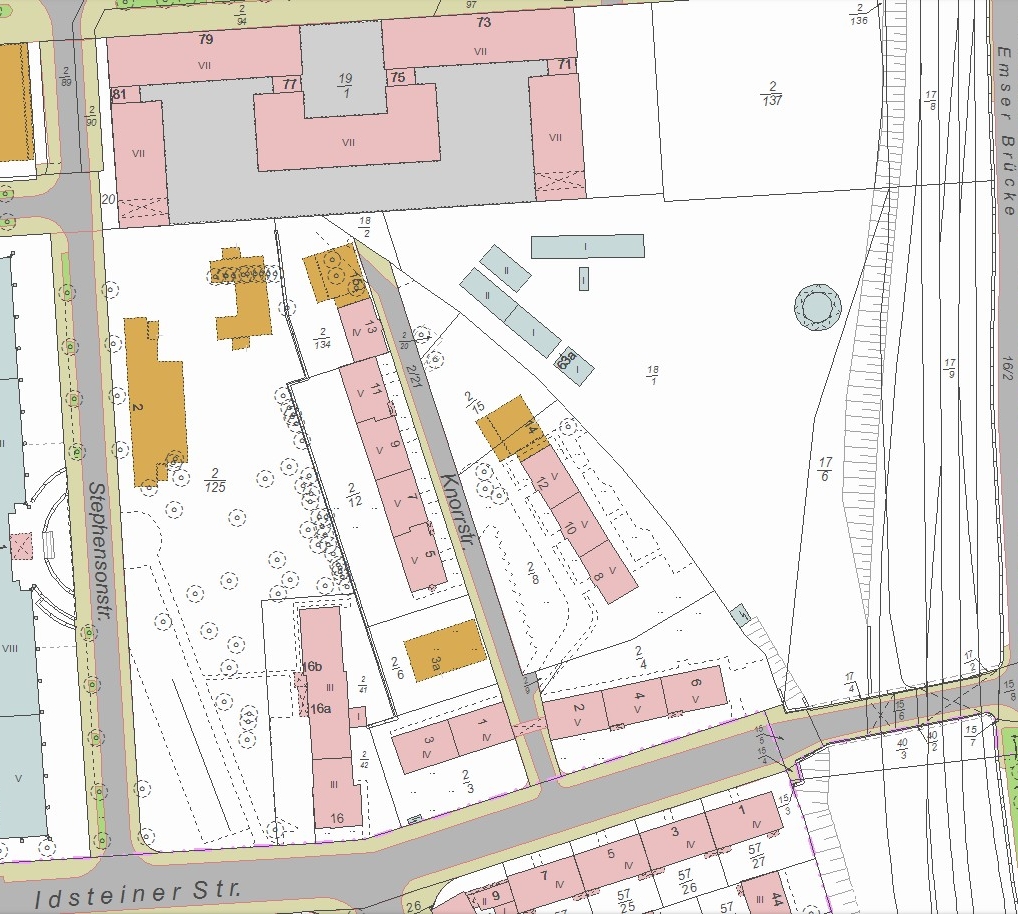 Bild: Vonovia SEIn der Stadtgrundkarte sind diese Markierungen vorhanden, das (mir unbekannte) Vorhaben Stephensonstraße 2 wird nicht zum Vonovia-Projekt gehören: