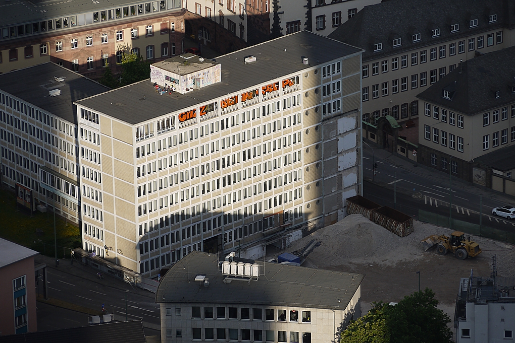 Die Commerzbank lugt durch die leere Fensterhöhle.