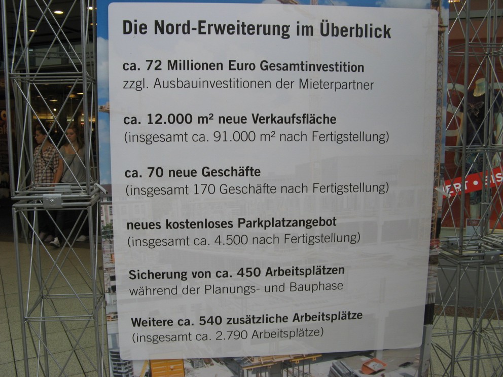 ECE kalkuliert für die Erweiterung Kosten von ca. 60 Mio. € plant den Baubeginn im Oktober/November 2009 und die Fertigstellung mit Eröffnung im Herbst 2011.