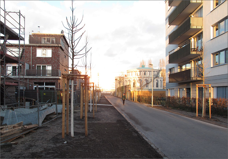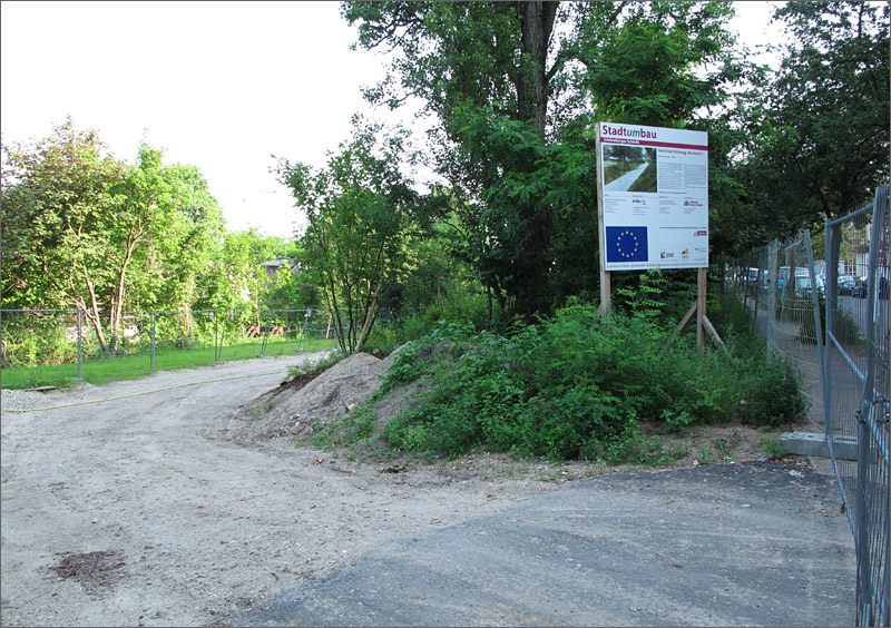 Foto 7: Hier musste man vor gut einem Jahr noch links abbiegen zur Daumstraße, da man durch ein Privatgrundstück noch nicht durchkonnte. Inzwischen hat man sich geeinigt und den Weg durchgebaut: