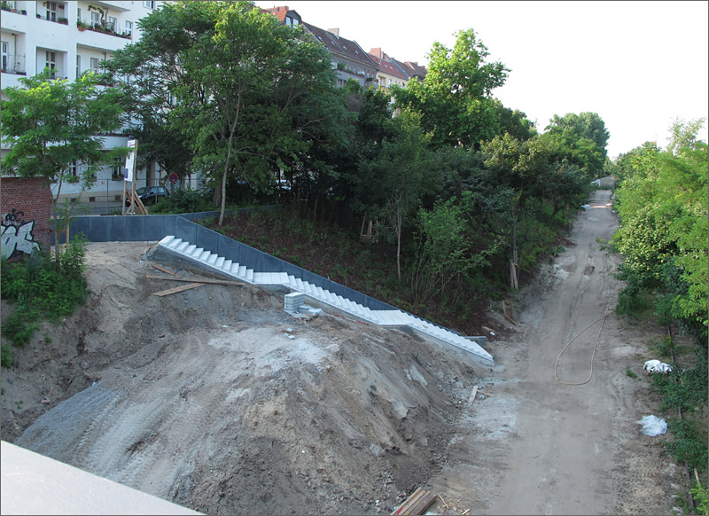 Foto 3: Fahrradrampe zum Weg am Südufer der Insel Eiswerder, am westlichen Ende der Eiswerderbrücke: