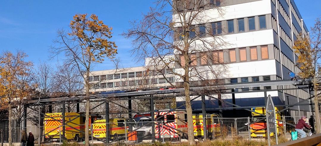 Heute wurde am Parkhaus der Bundeswehrkrankenhaus gebaut am Dach Bereich . Fahrzeuge des Bundeswehrkrankenhaus stehen bereit für den Einsatz.