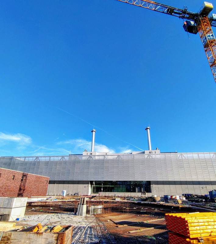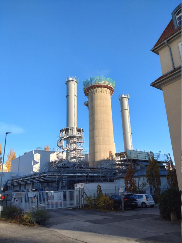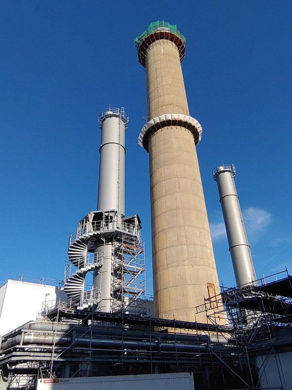 Die längst fertigen 35 Metern Schornsteine die in Betrieb sind seit über ein Jahr. Sein großer " Bruder" kommt den bald entgegen von der Höhe. ⬇️
