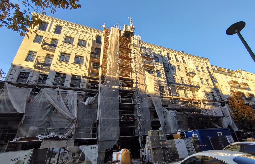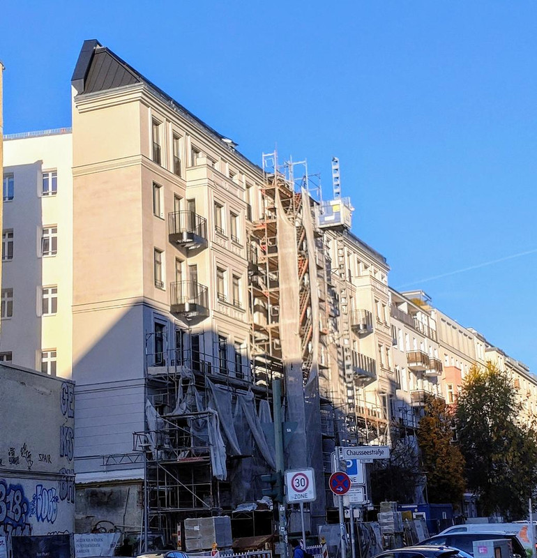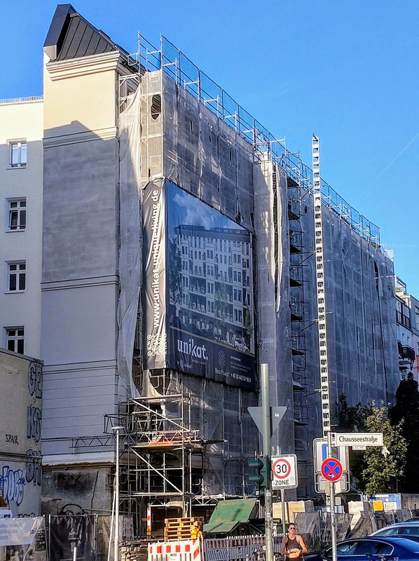 Das Gebäude was seit langen Saniert wird , hält sich in ein ganz langsamem Bau Tempo. Wenigstens ist das Dachgeschoss Fast fertig ein Teil & Außenwand .