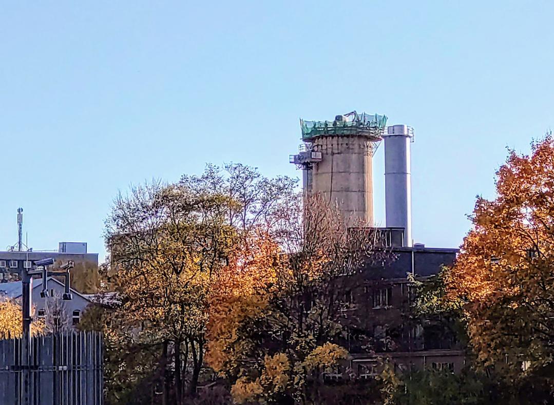Nun sind sie 2 neue Schornsteine 35. Meter höher als der Alte ( 150 M. ) aktuell ist der alte Schornstein auf ca. 15 Meter. Ein Blick kurz am Abend.