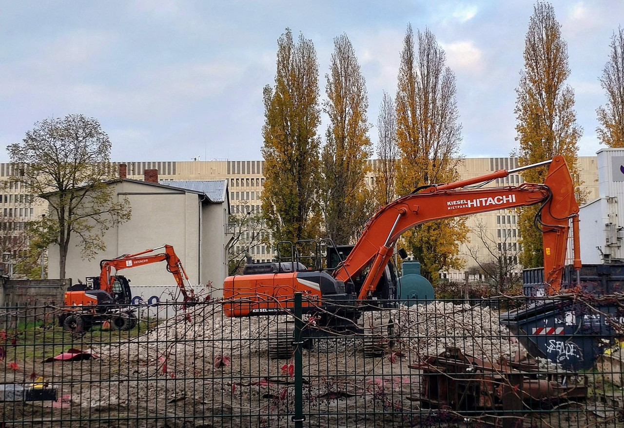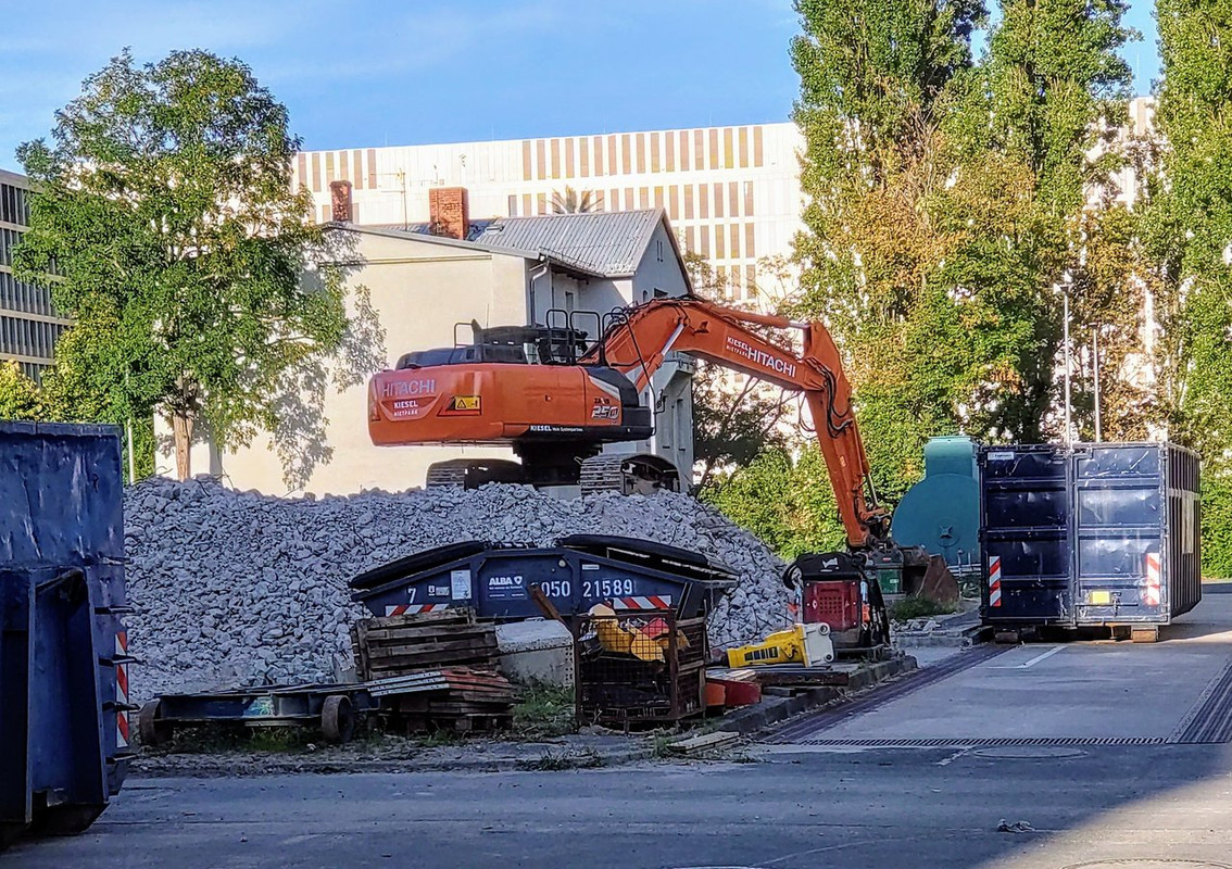 Links unten : Aufzug Gerüst & oben der Abrissbagger ⬇️