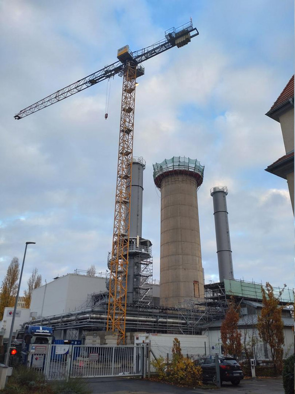 Die Tage sind gezählt. Vlt noch dieses Jahr kurz vor Neujahr. Ursprünglich sollte der alte Schornstein im Sommer dieses komplett weg sein.