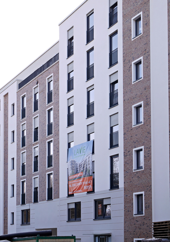 Fassade gefällt mir sehr gut, wobei ich den unteren Teil in Sichtbeton als Stilbruch sehe. Zurückgesetzt und geklinkert wäre schöner gewesen.