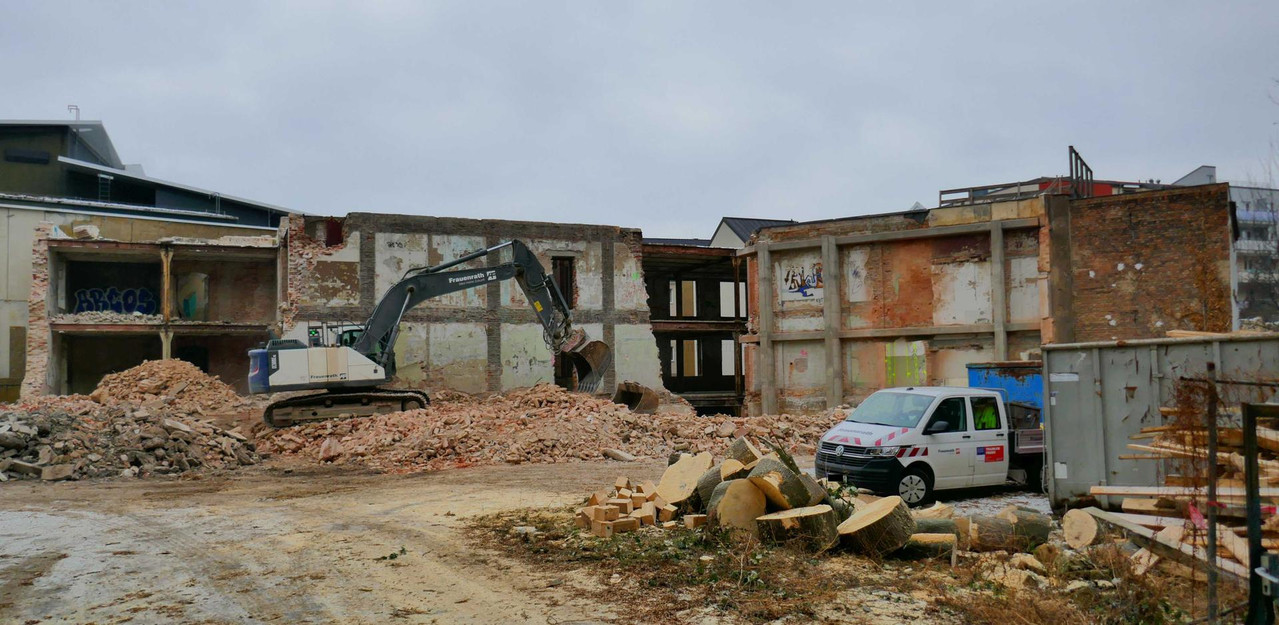 Als ich Ende Januar vorbeikam, war der Abriss zumindest in der Grünen Str. im Gange.