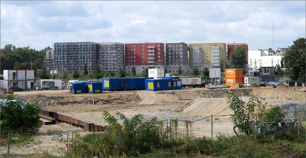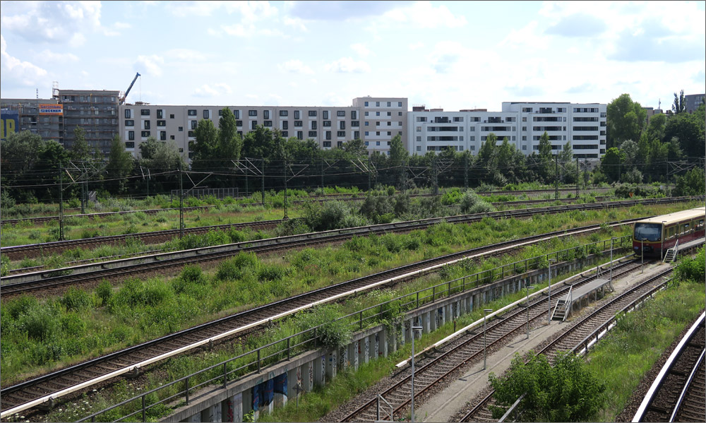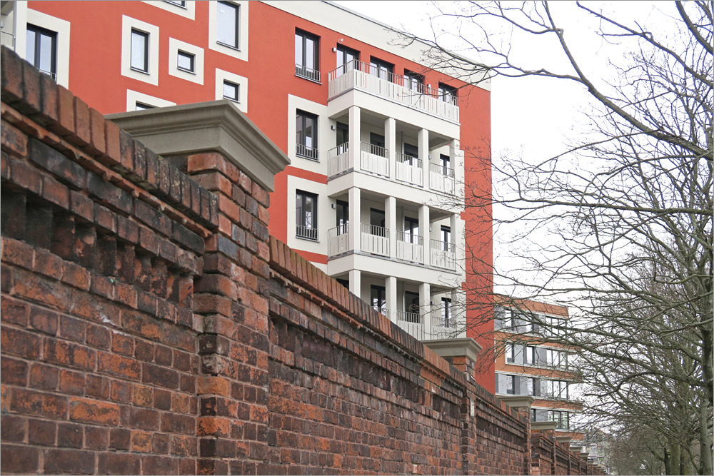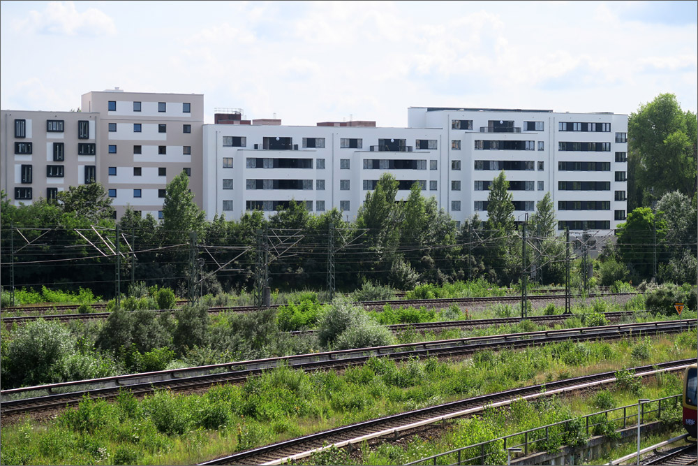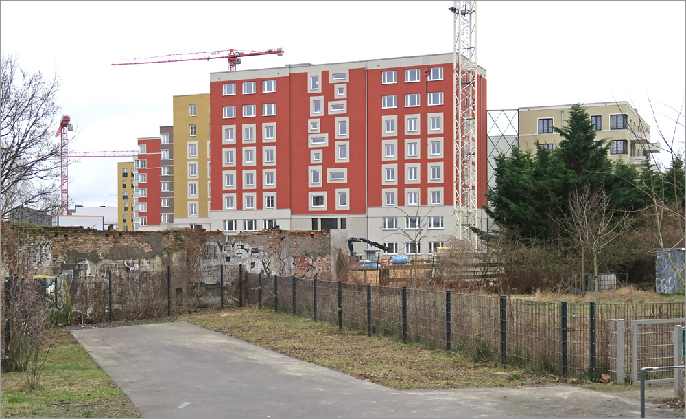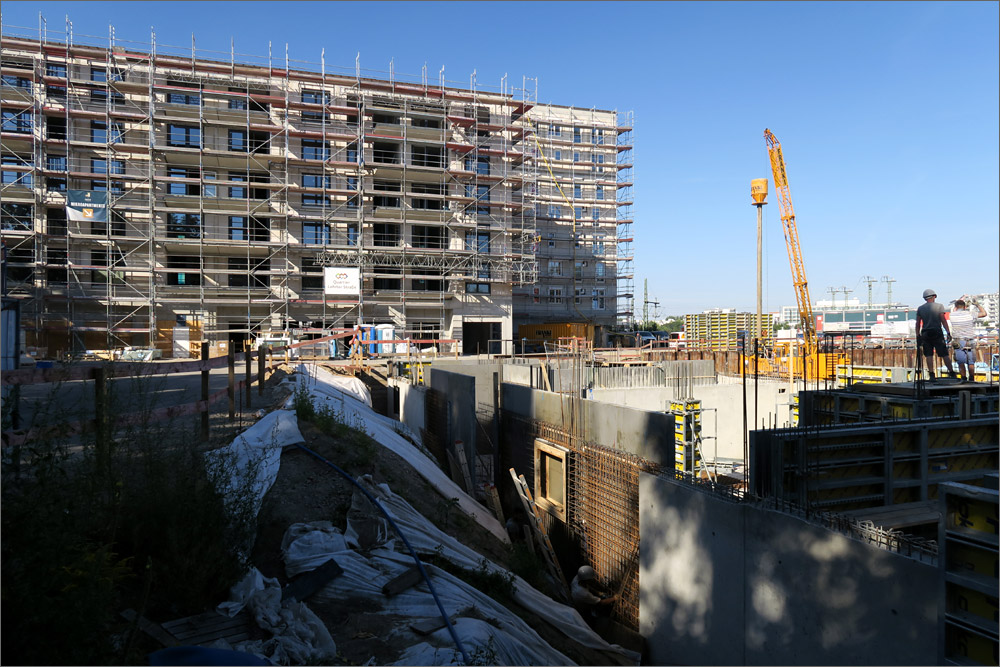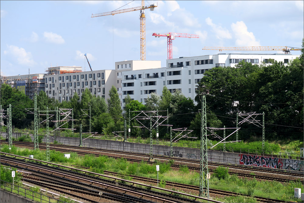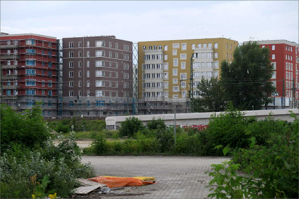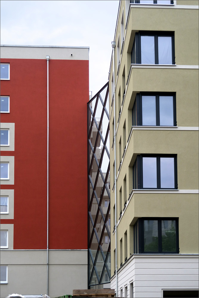 Die Gestaltung empfinde ich auch als gelungen. Die kräftigen Farben sind jedenfalls besser als der übliche Grau/Weiss Mix. Es gibt Eckfenster, die Balkone sind anständig geplant und ausgeführt, der Vergleich mit einem Plattenbau verbietet sich meines Erachtens. Natürlich ist das Ganze äußerst dicht bebaut und mit der Bahnanlage im Hintergrund nicht ideal, aber immerhin wurde mit der Gebäudeanordnung auch der Versuch sichtbar eine ruhige Innenhofzone zu schaffen und den begrenzten Platz optimal auszunutzen. Ich kann da nachvollziehen was die Architekten sich dabei gedacht haben, was mir bei vielen Bauvorhaben nicht gelingt.
