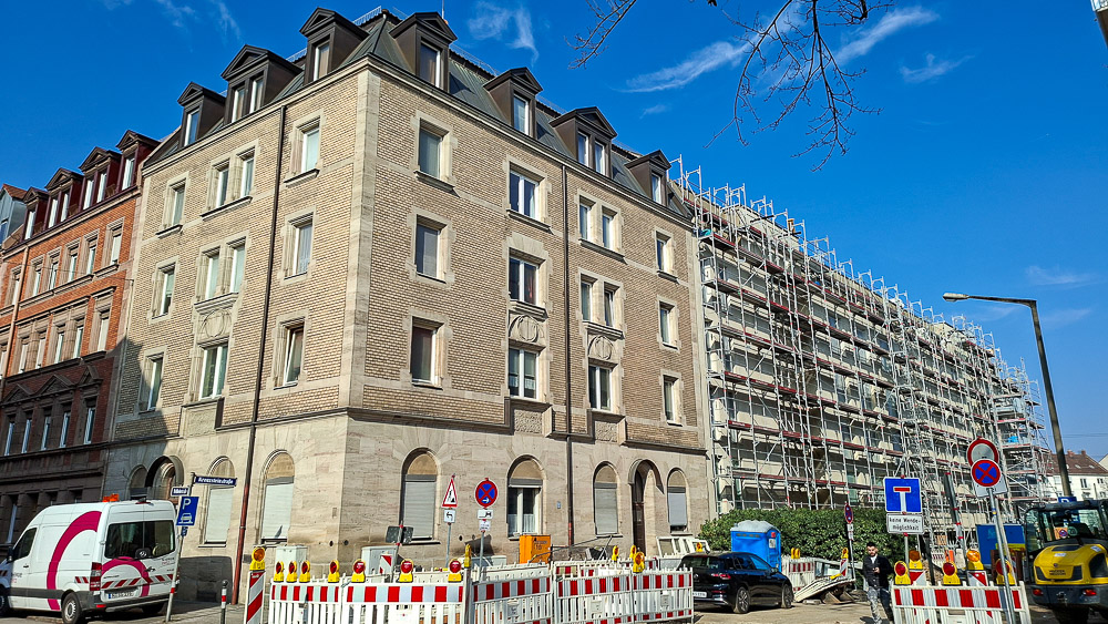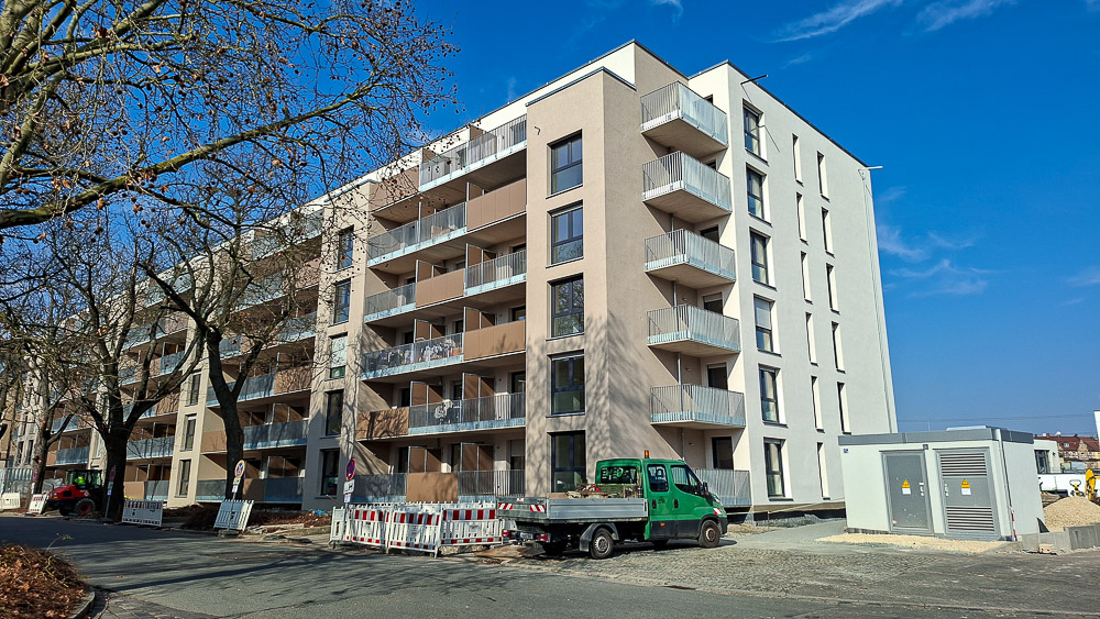 Die Neubauten, die den Stadtteil Schweinau verdichten, sind fast fertig. Aus einem ehemaligen Gewerbe-Mischgebiet wird nun reines Wohnen, und meiner Meinung nach wertet es den Stadtteil auf. Der Vorzustand ist auf Streetview aktuell noch zu sehen: