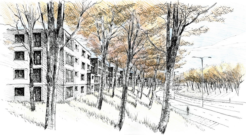 Die GWB-Gruppe beabsichtigt dort den Bau einen Komplexes mit 191 Wohnungen mit 220 Stellplätzen, womit der Wegfall des Parkplatzes für Autofahrende sicherlich verschmerzbar sein wird. Vor einigen Jahren schon hing an einem Stromkasten vor Ort eine famose Architekturskizze, die vielleicht ein Vorgeschmack ist auf das, was dort entstehen könnte:
