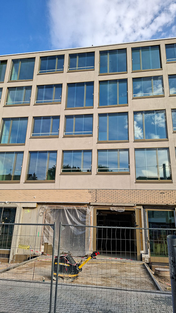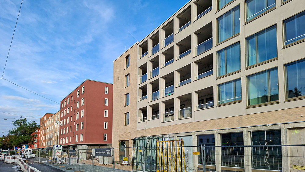 Der Stadt Nürnberg, Politik wie Verwaltung, ist der öffentliche Raum nichts wert. Er ist einfach wertlos, nicht wert gereinigt und sauber gehalten zu werden, gestaltet zu werden, kultiviert und bespielt zu werden, und auch aufgewertet zu werden. Der Gehweg ist halt nur 2 Meter breit, das wurde mal keine Ahnung 1935 festgelegt, und so isses halt. Und wenn man das Gebäude nun ein paar Meter zurück setzen würde, dann hätte man noch mehr dieses wertlosen Stadtraumes. Deshalb darf jeder Privatmann und Investor soviel davon bebauen, wie es rechtlich zulässig ist.