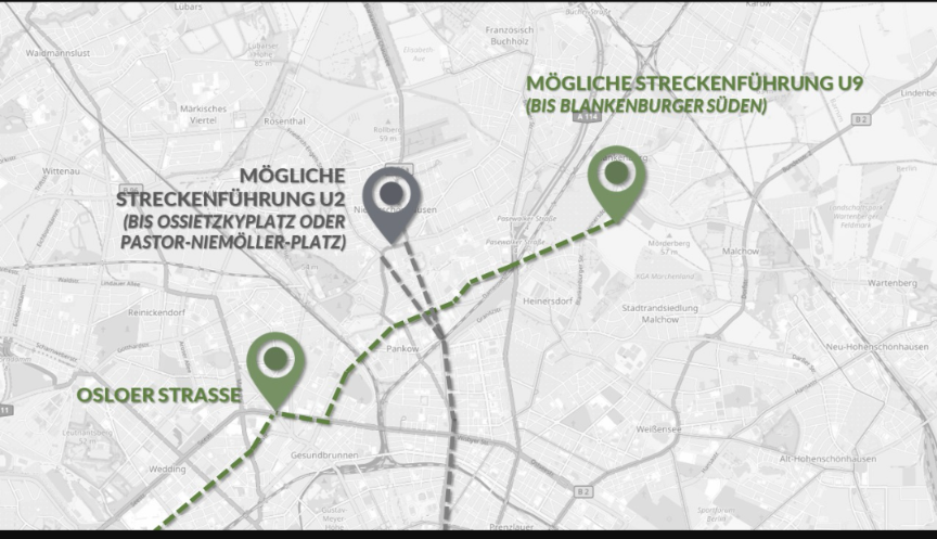 Jetzt hat der Senat die BVG beauftragt, mögliche Trassen, Kosten/Nutzen und Finanzierung zu prüfen. Kosten sollen ca. 330 Mio Euro und Länge 2 km.