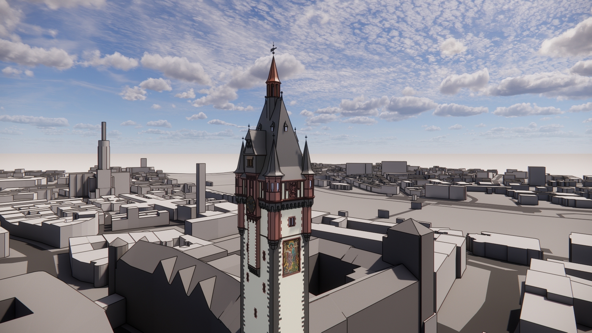 Gem. der Baugenehmigung vom 08.04.2024 zum "Rückbau und Wiedererrichtung des Turmaufbaus in veränderter Form am Südflügel des Römers ("Langer Franz")" sind u. a. Vorgaben des hessischen Denkmalschutzgesetzes zu berücksichtigen. Danach steht die Zustimmung der Denkmalbehörden unter dem Vorbehalt diverser Auflagen, welche sich neben den zahlreichen Zierelementen insbesondere auf die nachfolgenden Sonderbauteile beziehen: