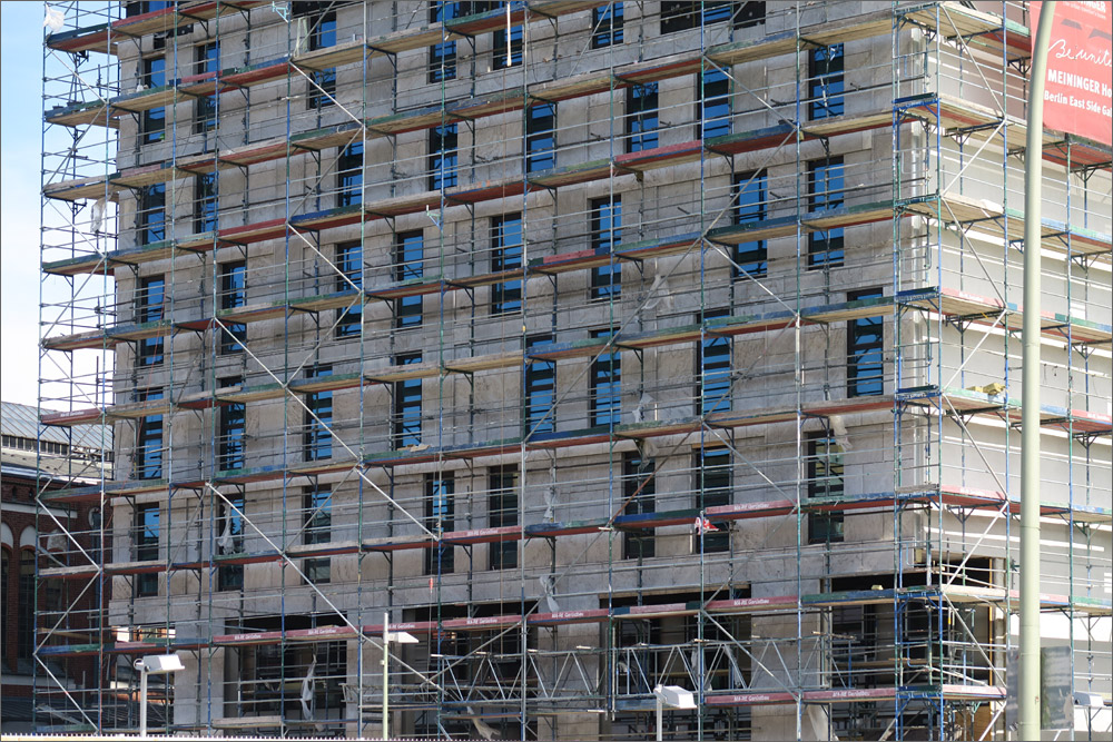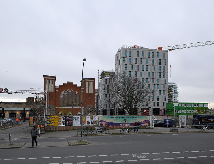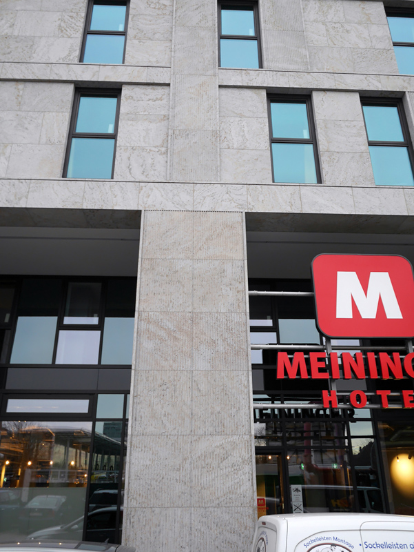 • Die Steinfassade des Meininger Baus finde ich nicht dramatisch schlecht. Bitter finde ich grundsätzlich dass man bei der Entwicklung dieses Viertels absolut kein Gespür für die Umgebung zeigt und den Postbahnhof einfach mit grossklotzigen Türmen zubaut. Der Postbahnhof wird weithin das eleganteste und schönste Gebäude in dem ganzen Viertel bleiben...Einfach nur bitter...