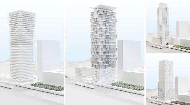 Interessant, denn auf dem Bild des Entwurfs von HPP Architekten sieht man dass der 60m Turm hinter dem großen steht. Dies wird bei den anderen Entwürfen ähnlich gelöst sein.