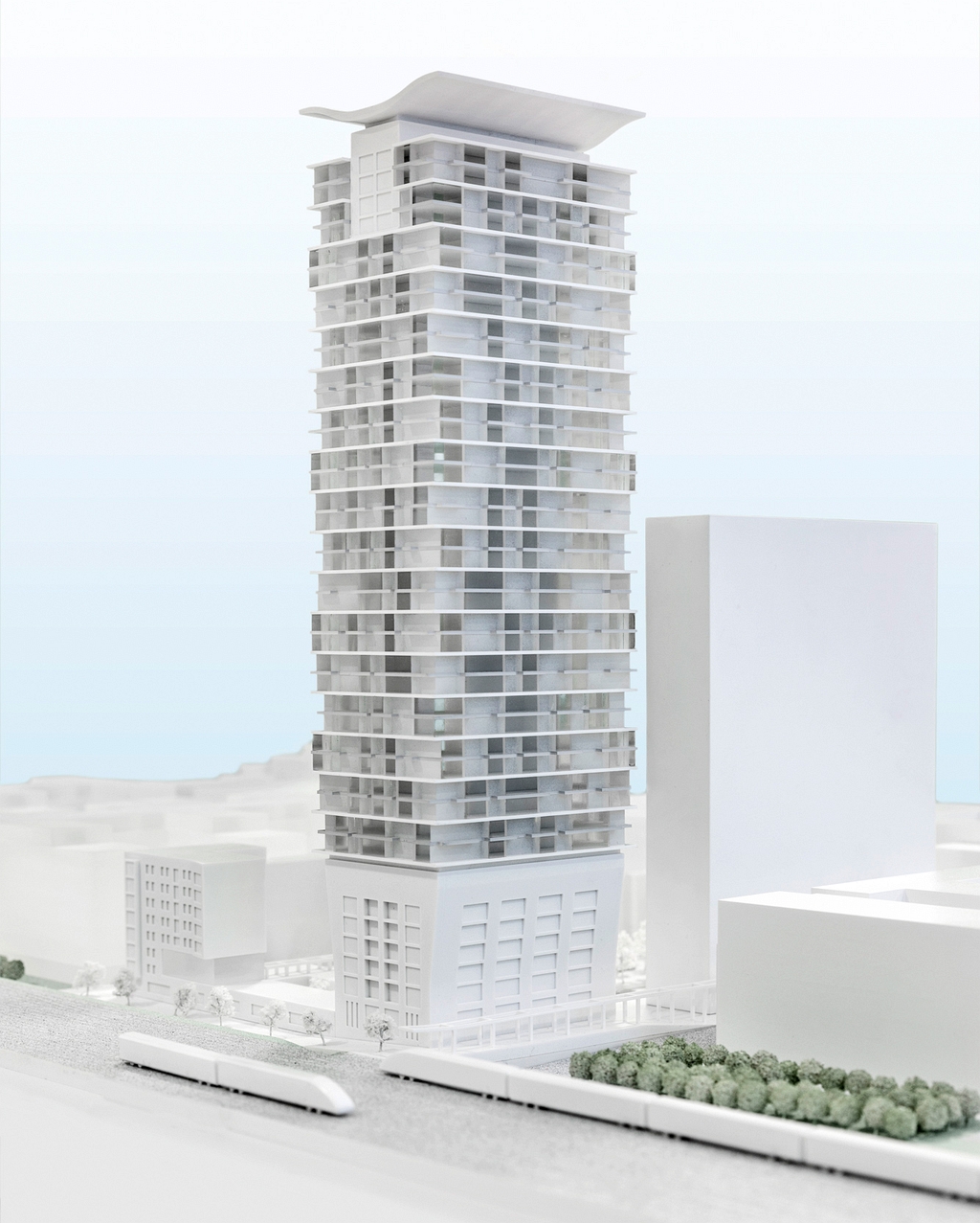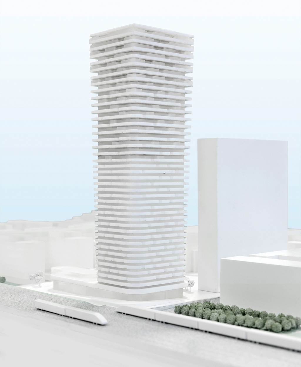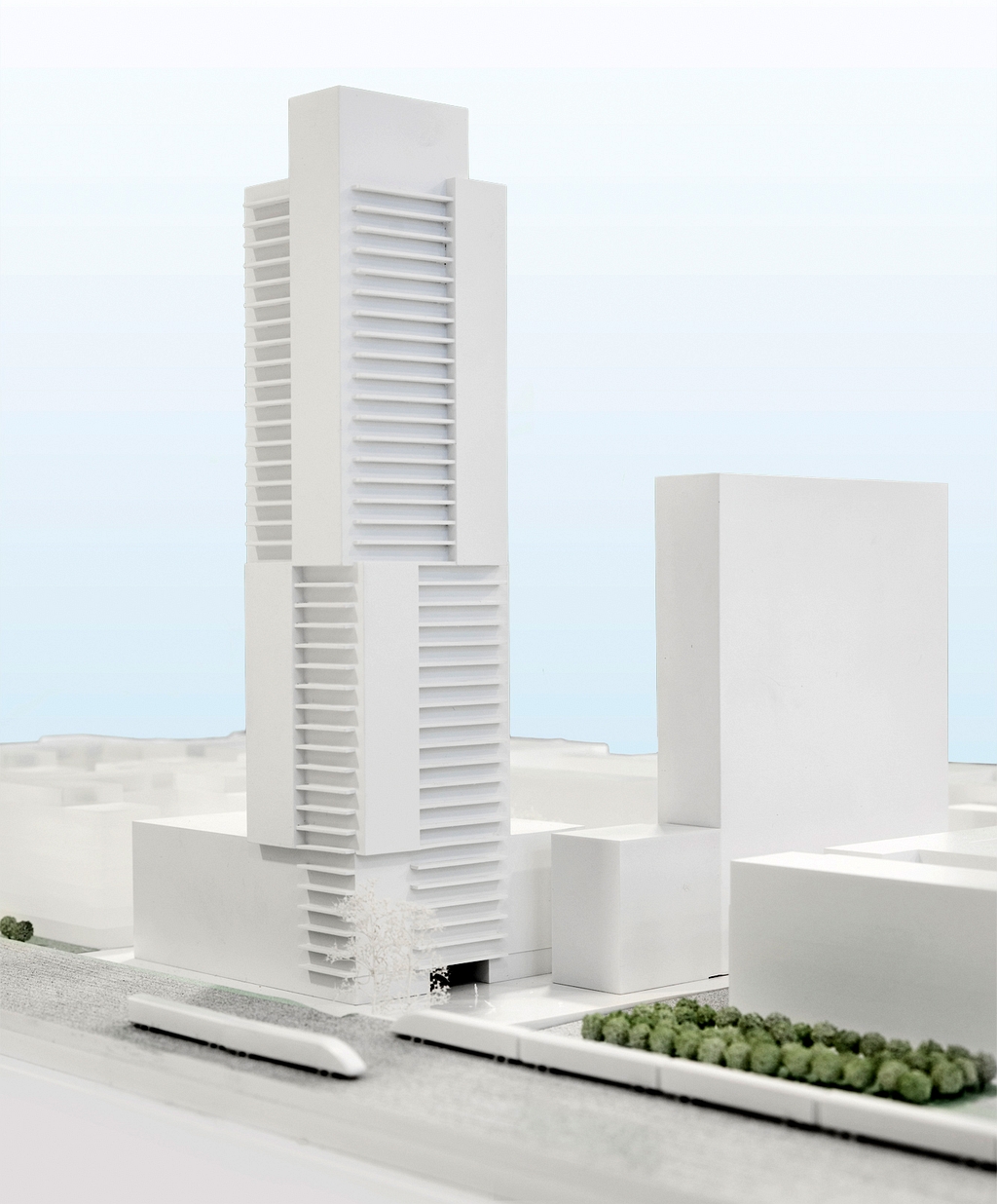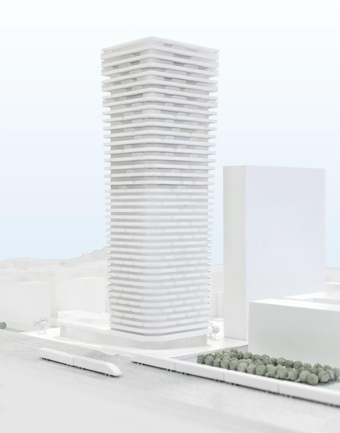 Das niederländische Büro Mecanoo hat das Rennen im Wettbewerb um den 140 Meter hohen Wohnturm mit 600 Wohnungen gemacht. Das steht in der FAZ von morgen, inklusive eines Fotos des Modells - ganz in weiß. 30% der Wohnungen sollen gefördert sein, wie Mike Josef mitteilte. Eine Kindertagesstätte sowie Platz für einen Supermarkt und Gastronomie sollen ebenfalls entstehen.