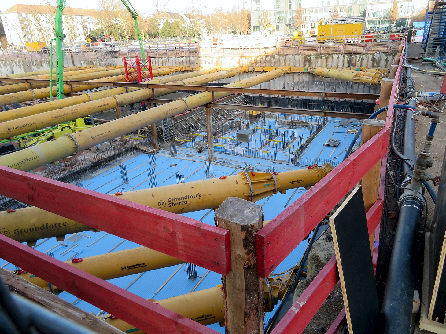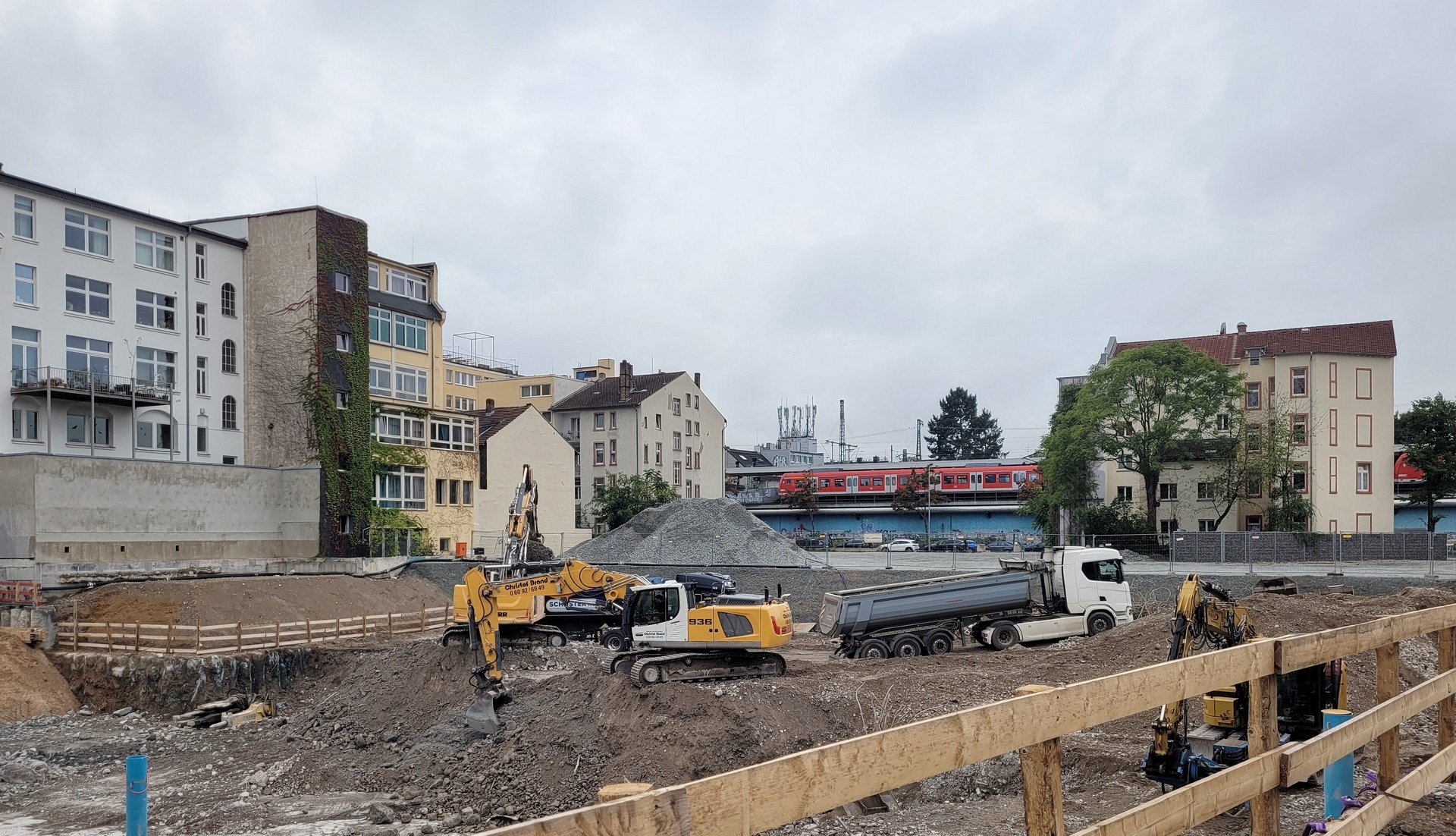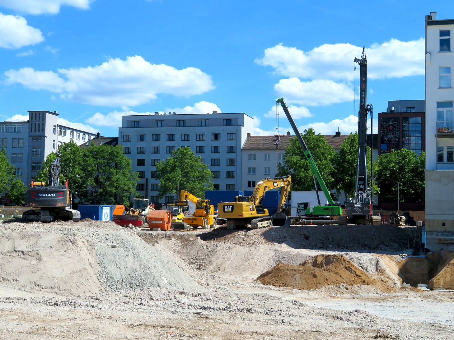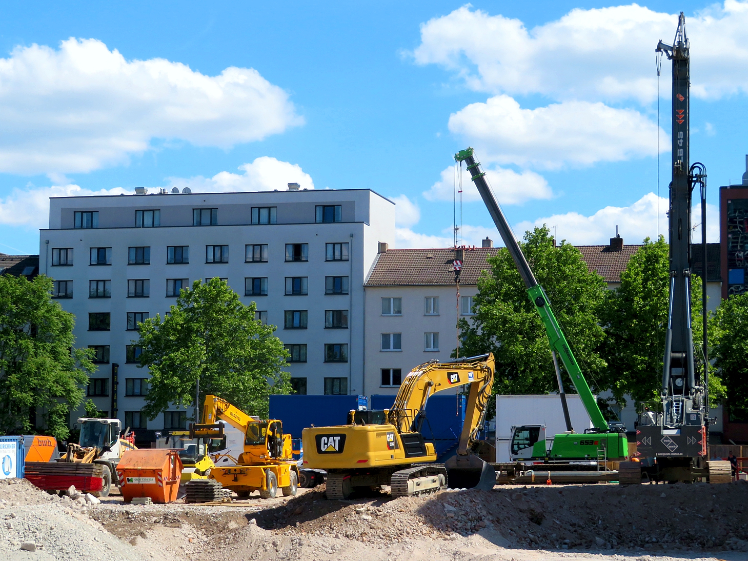 An der Ecke Günderodestraße Frankenallee arbeitet gerade die Firma Implenia mit einem Liebherr LB 30 Drehbohrgerät. Hier stand ein Gebäude, das bis in die 80er Jahre auch als Tankstelle genutzt wurde #40. So ließ sich im Rahmen des Abrisses hier ein umfangreicher Erdaustausch beobachten. Aufgabe der Firma Implenia ist jetzt die Sanierung eines noch verbliebene, lokal begrenzten Schadstoffareals durch Aushub und Neuverfüllung. Das Gelände wird nach dem Rückbau Altlastenfrei der Stadt Frankfurt für den dort vorgesehenen Schulbau übergeben.