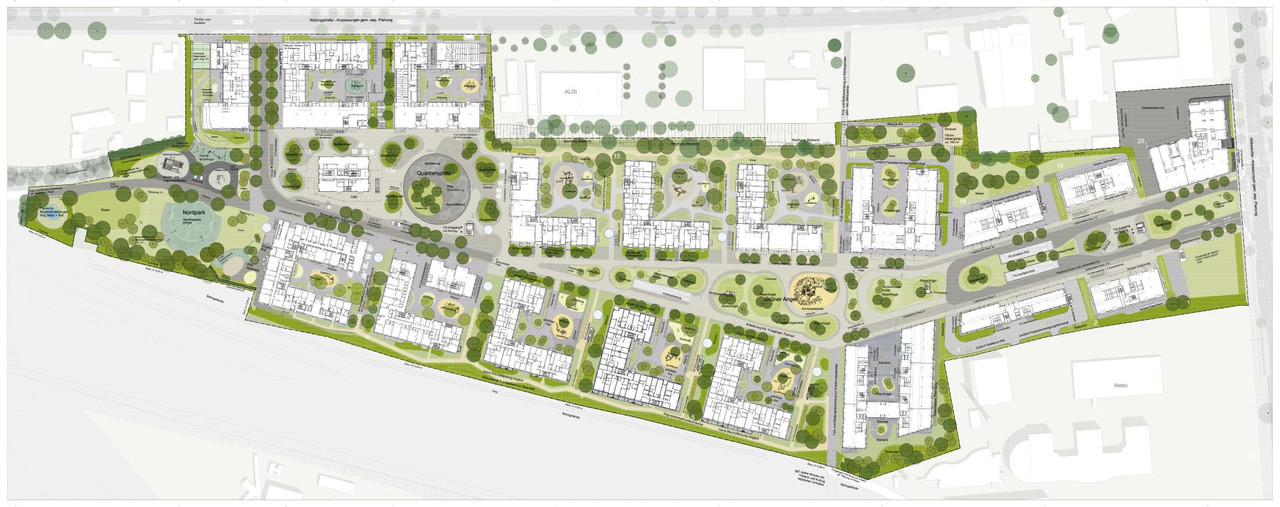 Gebaut werden sollen 700 Wohnungen und eine Flüchtlingsunterkunft. Ebenfalls sind Flächen für für soziale Einrichtungen, gewerbliche Nutzung und u. a. ein Handwerkerhaus vorgesehen.