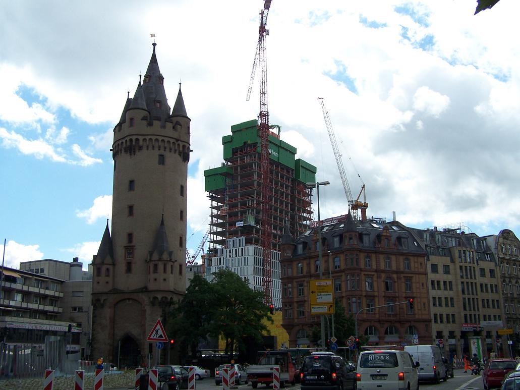 Gruppenbild mit Opernturm, gesehen von der Konstablerwache
