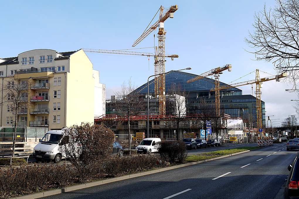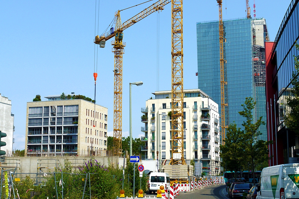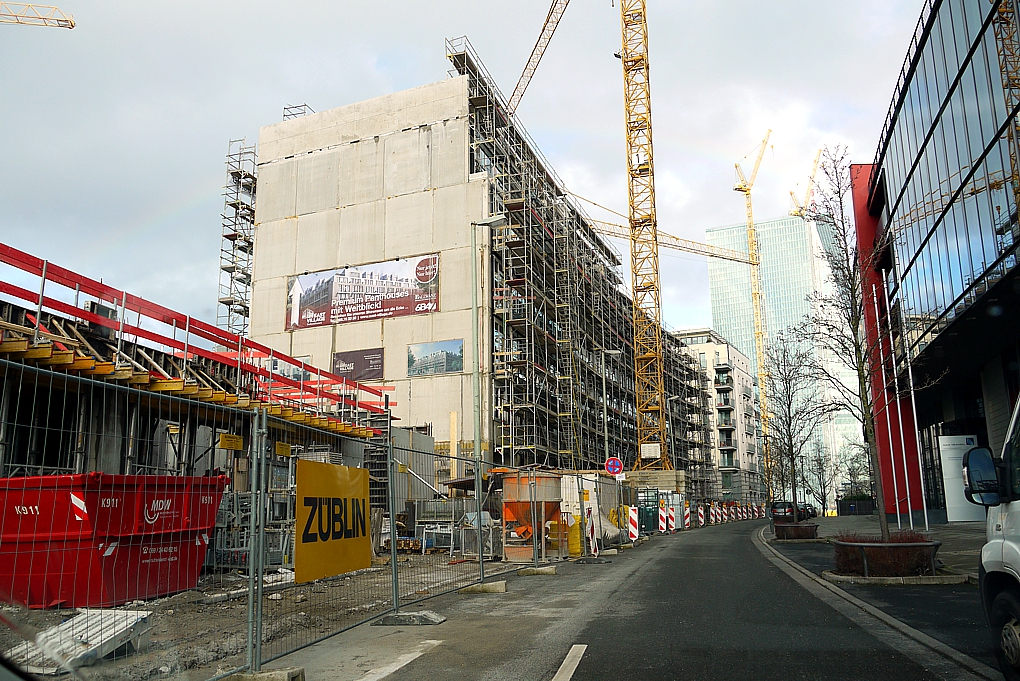Nach Sandweg, Westhafen und Bockenheimer Warte nun wieder ein Wohnblock mit "gerundeten Ecken". Der bisherige Höhepunkt dieser Entwicklung dürfte dieses Schmankerl und leider, leider nicht verwirklichte Hochhaus von Stefan Forster sein. Es ist gut zu sehen, dass man eine neue Formgebung zu wagen scheint als pure Quader mit spitzen Ecken. Mal sehen wo diese Entwicklung noch hinführt.