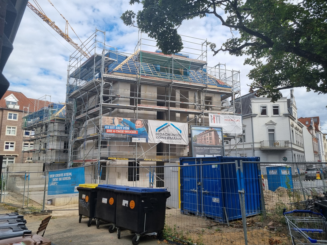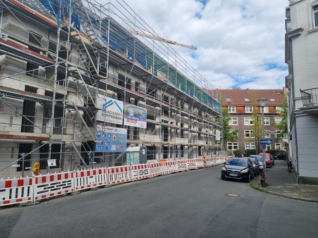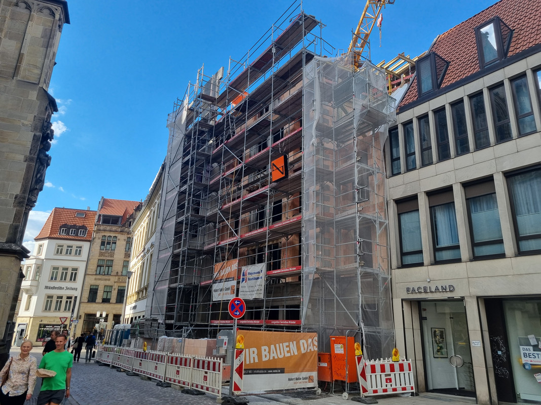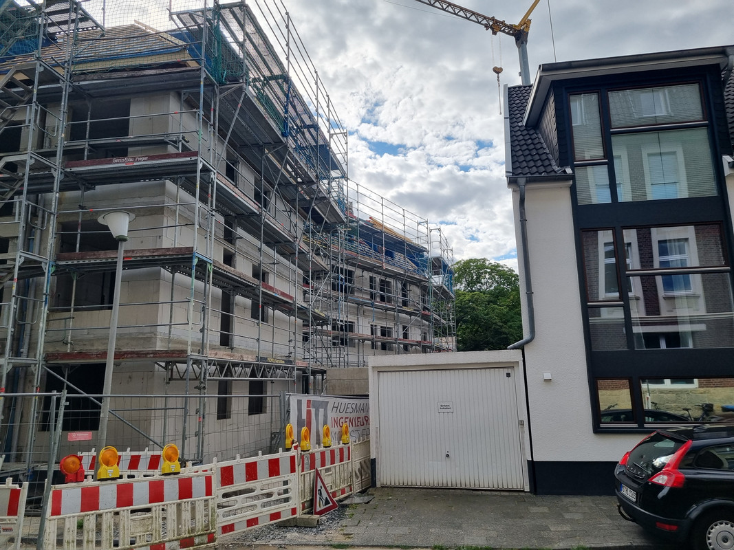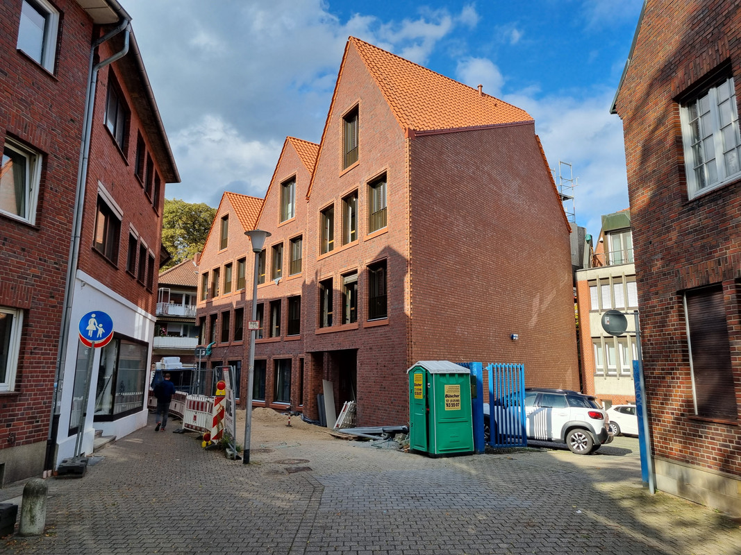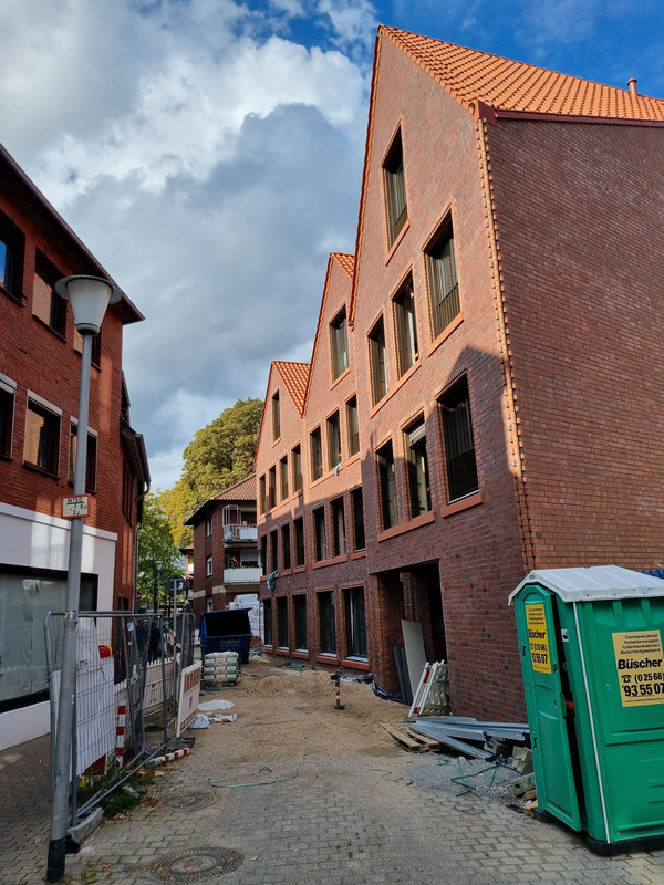 Und ich verstehe nicht, wieso man in MS nicht mehr auf ein zuästzliches Stockwerk an der Kopfseite von Gebäuden setzt. Der Riegel als Nachbar hätte das durchaus zugelassen und man hätte 2 WE mehr rausholen können. Außerdem wäre die Kreuzung reizvoller geworden.