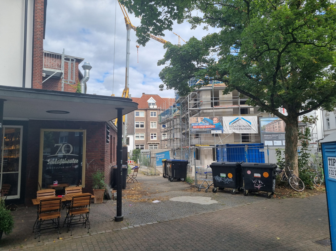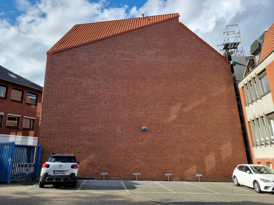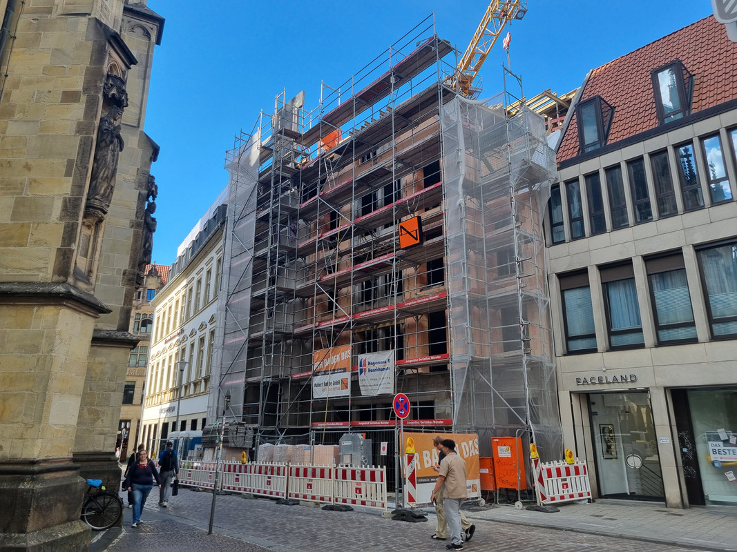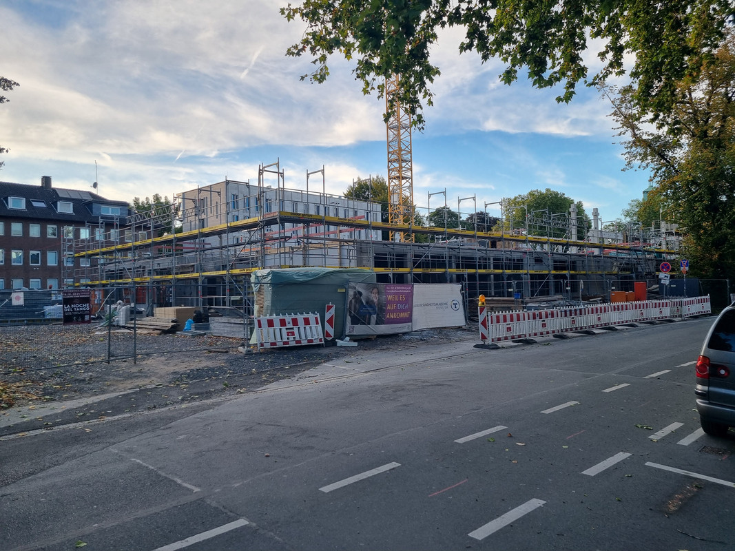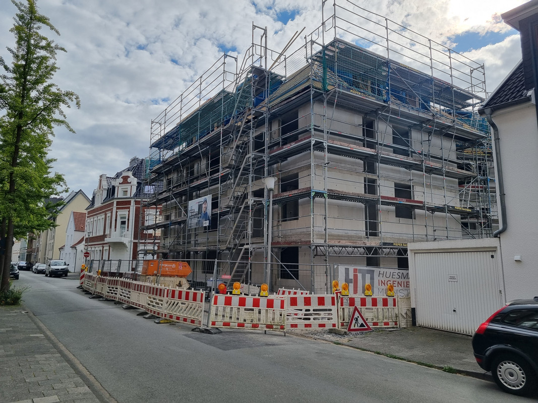 Und ich verstehe nicht, wieso man in MS nicht mehr auf ein zuästzliches Stockwerk an der Kopfseite von Gebäuden setzt. Der Riegel als Nachbar hätte das durchaus zugelassen und man hätte 2 WE mehr rausholen können. Außerdem wäre die Kreuzung reizvoller geworden.
