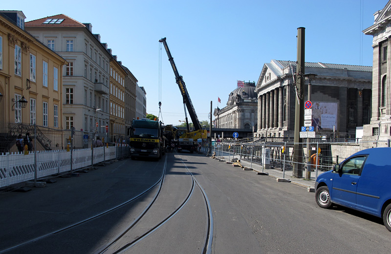 Dieser Entwurf lehnt sich optisch wirklich sehr stark an der nördlichen Monbijoubrücke an. Das betrifft nicht nur das Sandsteingeländer, sondern offenbar auch die Kandelaber aus der Kaiserzeit (abzüglich der Granitsäulen). Von wann ist denn die Visualisierung, Konstantin?