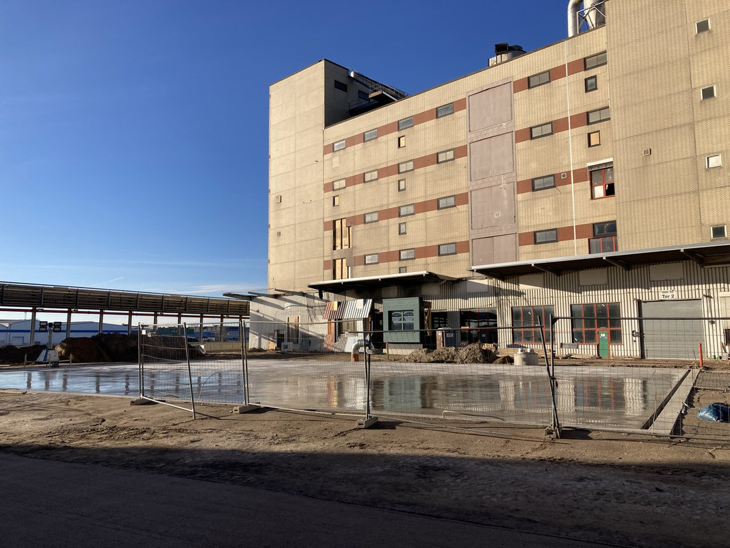 Das benachbarte Fabrikgebäude wird auch bereits umgebaut, aber von außen sieht man nicht viel: