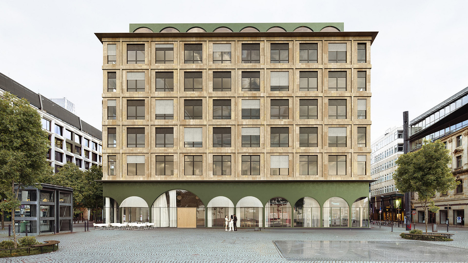 Heute wird das Thema von der FAZ aufgegriffen. Berichtet wird von schwierigen Eigentumsverhältnissen. Rund die Hälfte der Liegenschaft gehört demnach zwei Familienstiftungen. Der andere Teil nach Informationen der Zeitung dem Frankfurter Immobilienkaufmann Samuel Singer, der den Anteil von der insolventen Signa-Gruppe erworben hatte. Gleichwohl scheint es zu einer Verständigung bezüglich einer Neuentwicklung gekommen zu sein, wozu sicherlich der zunehmende Leerstand der Immobilie beigetragen hat.