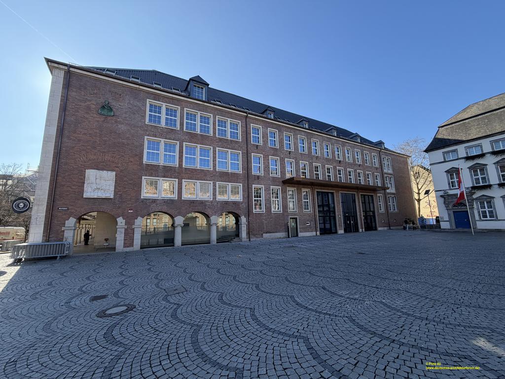 alte Kämmerei- anderer Winkel und ohne Weihnachtsmarktbesucher. Nunmehr ist auch besser zu erkennen, dass die Fassade zum Marktplatz geöffnet wurde. Es ist geplant, dass später in "die Fassadenöffnung" ein Café mit Außengastronomie einzieht.