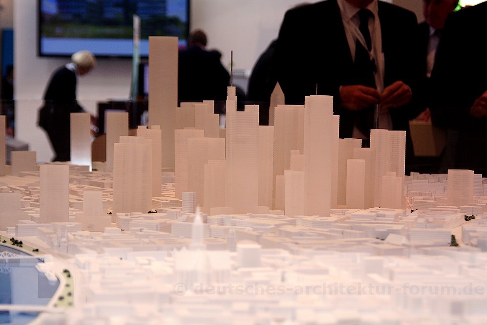 Ergänzend zu Schmittchens Bildern noch ein paar weitere Fotos vom Stadtmodell bei der Expo Real. Diese wurden mir freundlicherweise von der Wirtschaftsförderung (Frankfurt Economic Development GmbH) zur Verfügung gestellt, und zwar ausdrücklich für die Veröffentlichung in unserem Forum. Und die Damen und Herren dort sind sehr interessiert an den Reaktionen aus dem DAF!