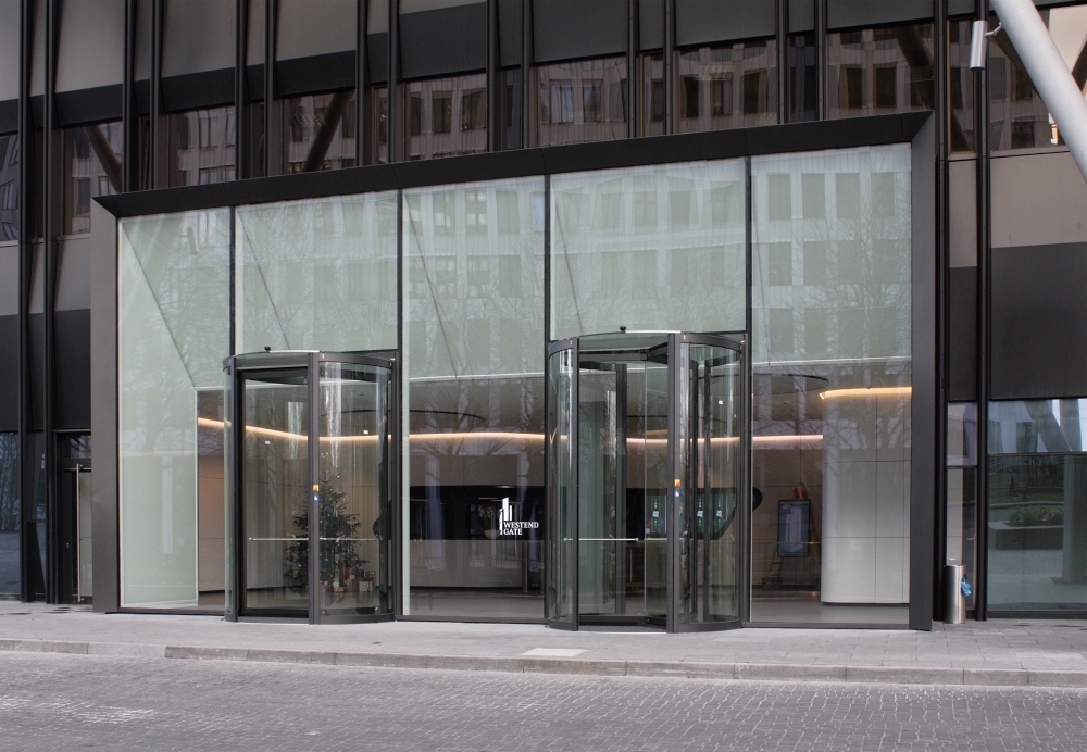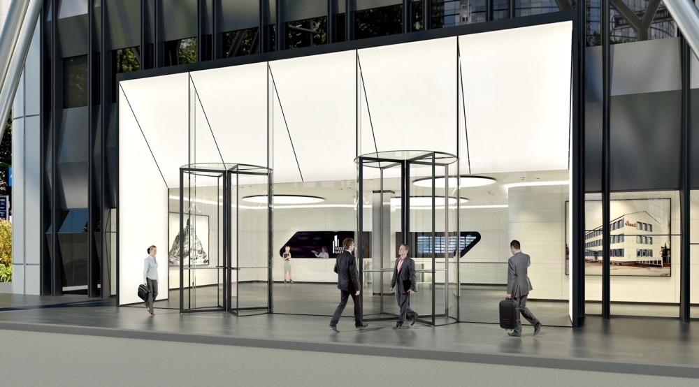 Die Realität kommt der im Vorbeitrag gezeigten Visualisierung ziemlich nahe - das neue Entrée zum Büroteil des WestendGate ist fertig: