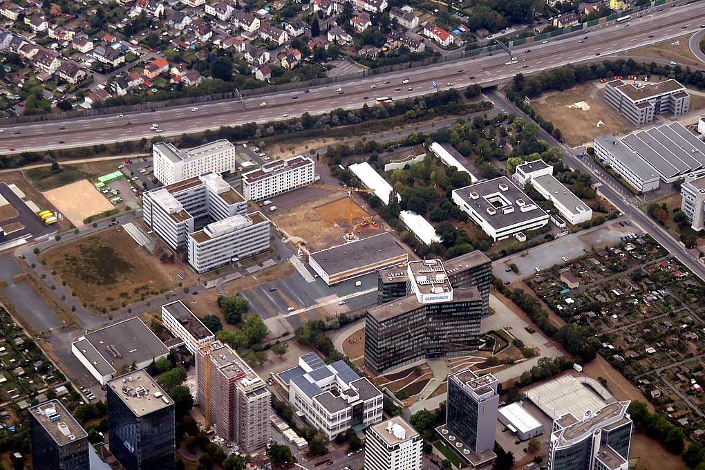 Bei der Baustelle am unteren Bildrand handelt es sich um das Projekt "Skywalk" (Lyoner Straße 30).