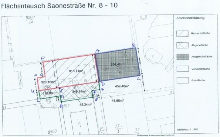 Die Anlage zum Magistratsvortrag mit Grundstücksgrenzen: