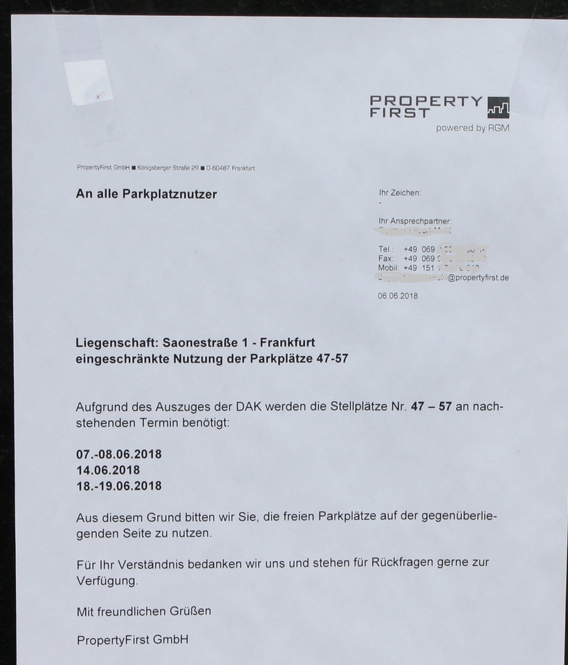 Damals ergab sich allerdings ein Widerspruch mit der Vermietungssituation, denn das Gebäude war augenscheinlich komplett vermietet. Inzwischen ist Gegenbauer nach Bockenheim gezogen. Bis zum vergangenen Wochenende hat auch die DAK, mit vier Etagen der Hauptmieter, das Gebäude geräumt (Aushang). Auch hier dürfte es also in absehbarer Zeit losgehen.
