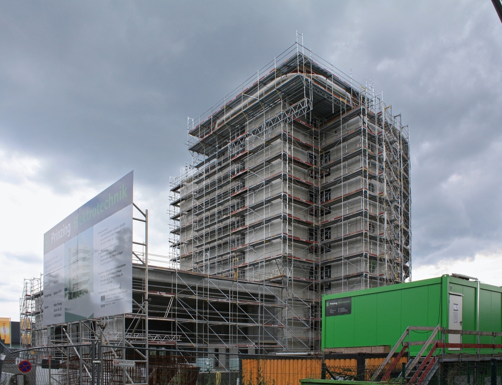 An der Colmarer Straße war das zuletzt in #210 erwähnte Gebäude für Prinzing im Rohbau weitgehend fertig (vor einem Jahr stand das Grundstück im Fokus wegen einer dort gefundenen 500-Kilo-Fliegerbombe):