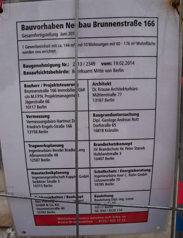 Die Baulücke Brunnenstraße 166 (Lage @ BingMaps) wird derzeit geschlossen: