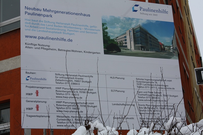 Die Paulinenhilfe Seidenstraße/Forststraße soll einem Neubau an gleicher Stelle weichen. Bin eben am Bauschild dran vorbeigekommen, hatte aber leider mein iPhone nicht dabei.